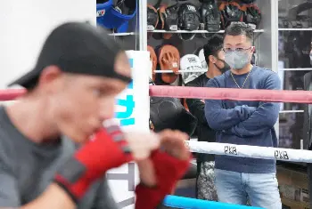 黒田雅之氏のツイッターから(@masayuki7_17)井上尚弥(左)とポーズを決める黒田氏