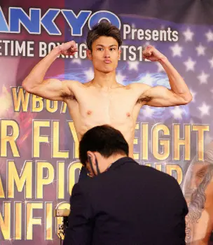 8回戦でプロデビューした7月は判定勝ちしたものの、両拳を痛めたため試合は5カ月ぶり。11月上旬から約1カ月間、米ラスベガスで井岡らとの強化合宿に加わった堤は「ケガや体調を崩すこともなく、いいコンディションでリングに上がれる」と順調な仕上がりをアピールした。減量は「体への負担を少なくするため、より(計量の)直前に落とした」と計量当日の朝に水抜きで1キロ落としたそうで、「前回よりも我慢する時間が少なくて楽でした」と笑顔。8月に現東洋太平洋スーパーバンタム級王者・武居由樹(26=大橋)に5回TKO負けしたアポリナルとも対面し「ベテランで数をこなしているので、落ち着いている感じ。向き合って、良い試合ができるのではと思った」と話した。