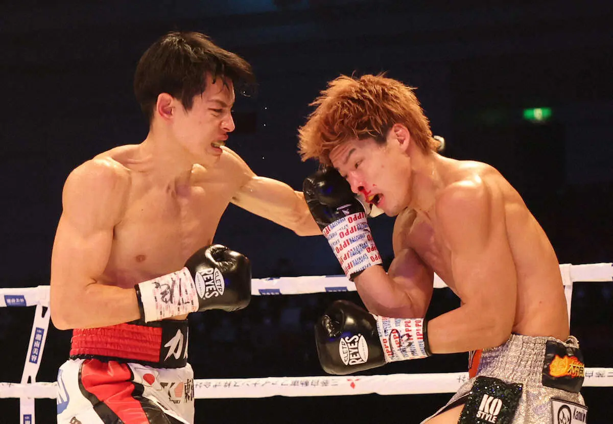 4R、木村(右)にパンチを放つ力石 (撮影・後藤正志)