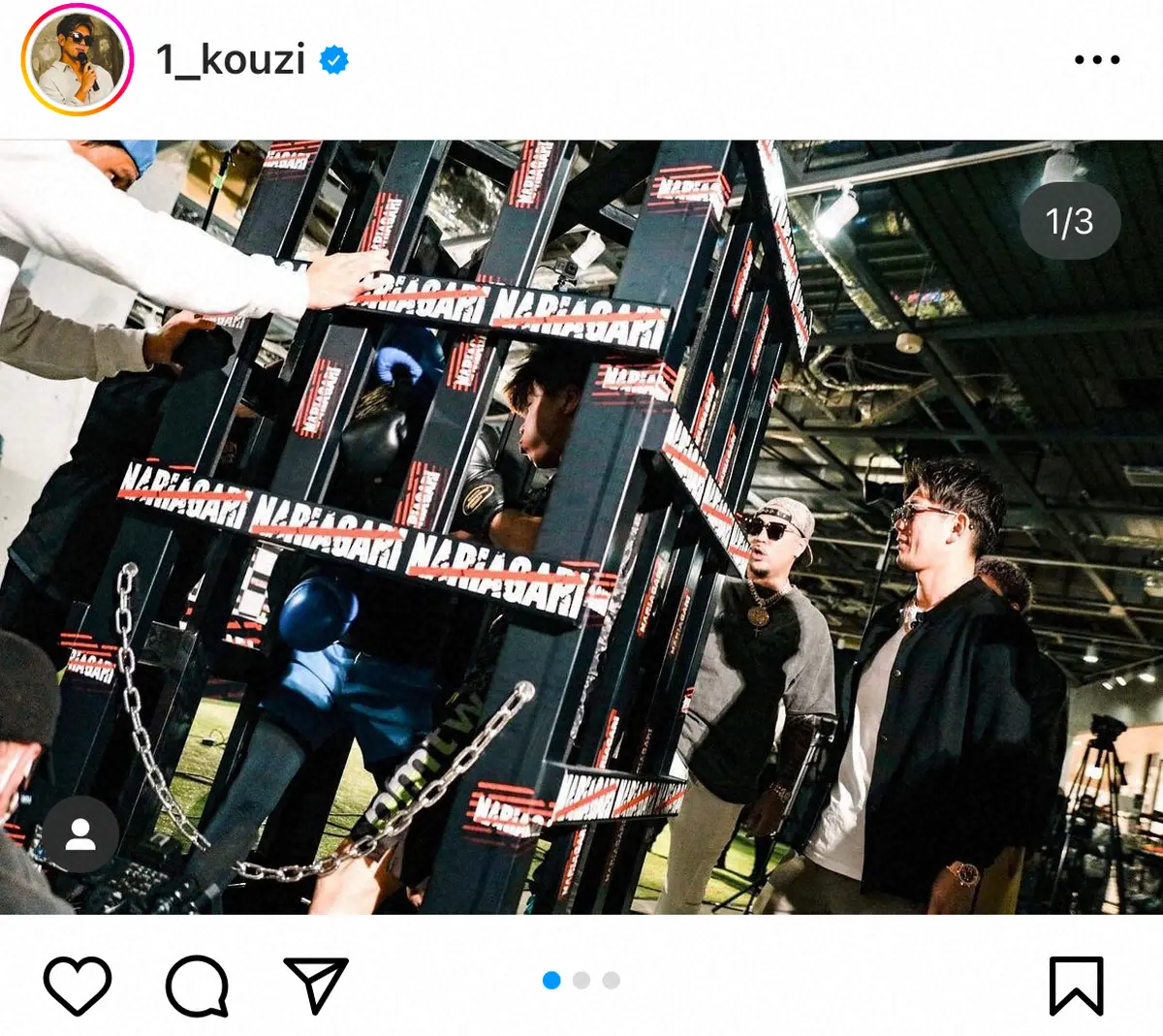 皇治公式インスタグラム(@1_kouzi)から 皇治 「電話ボックスの中で殴り合い」のイベント企画で賛否 「危険すぎ… ギャラリーで見る この記事のフォト 2023年01月10日の画像一覧 もっと見る 2023年01月10日の画像をもっと見る