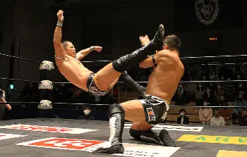 王者になって早くもライジングHAYATOとの初防衛戦が14日の新宿FACE大会で決まっている。HAYATOとは、ドラゴンゲート時代に愛媛大会で試合をしていた。「その時の印象を持っていたら、キャラが変わってビジュアル系になっていた」とキャラ変化に多少驚きながらも「別にピンクの髪の毛だろうが、ビジュアル系メイクしようがいいけど、彼には実績も何もない」とバッサリ言い切った。