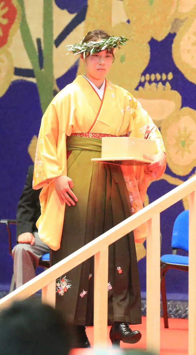 <日体大卒業式>理事長賞を受賞したボクシング部の入江聖奈(撮影・西川 祐介)
