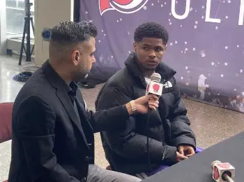 取材に応じる重岡優大