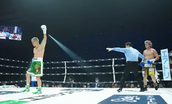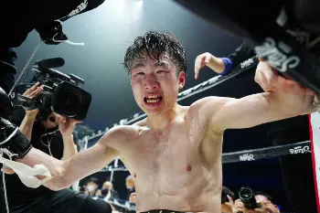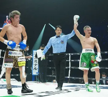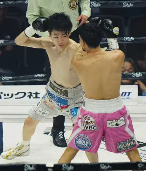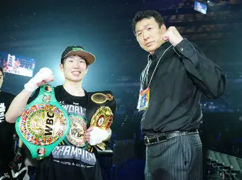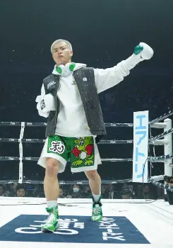 <ダブル世界戦>ラウンドガールを務める新唯(撮影・西尾 大助)