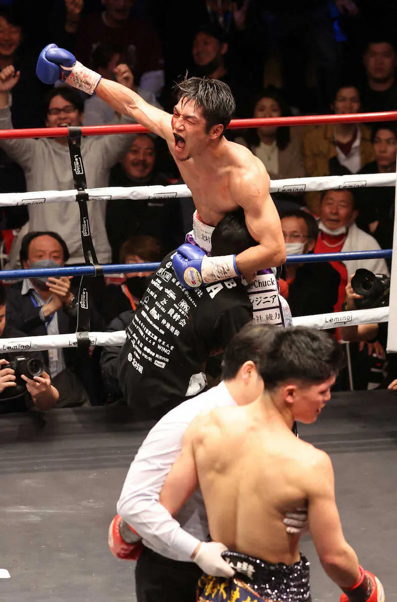 日本ライト級タイトルマッチ<宇津木秀・仲里周磨>3回KO勝ちの仲里(左)=撮影・村上 大輔 Photo by スポニチ 仲里周磨が日本ライト級新王者!21年ぶり沖縄にベルト「やっと獲れてホッ… ギャラリーで見る この記事のフォト 2023年04月26日の画像一覧 もっと見る 2023年04月26日の画像をもっと見る