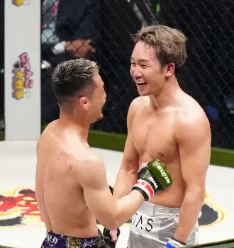 <RIZIN LANDMARK5>試合を終え笑顔の朝倉(右)と牛久(撮影・島崎忠彦) Photo by スポニチ 【RIZIN】朝倉未来 1年4カ月ぶりMMA復帰戦で牛久絢太郎に判定勝利!「男… ギャラリーで見る この記事のフォト 2023年04月29日の画像一覧 もっと見る 2023年04月29日の画像をもっと見る
