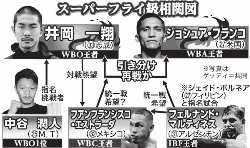 (左から)竹原慎二氏、渡嘉敷勝男氏、畑山隆則氏 Photo by スポニチ 元世界王者3人が井岡一翔VS中谷潤人の可能性を言及 畑山氏「垂涎のカード… ギャラリーで見る この記事のフォト 2023年05月18日の画像一覧 もっと見る 2023年05月18日の画像をもっと見る