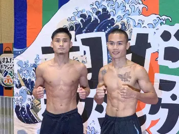 前日計量をパスした京口(左)とローランド・ジェイ Photo by スポニチ 京口紘人が再起戦へ計量パス 「あきまっくす」こと亜希夫人の特製鶏雑炊… ギャラリーで見る この記事のフォト 2023年05月19日の画像一覧 もっと見る 2023年05月19日の画像をもっと見る