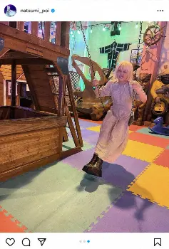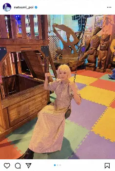 なつぽいは自身のインスタグラムで「ブランコ久々~」とつづり始め、「わーいわーい...酔ったぁ。の巻」とワンピース姿でブランコに乗る写真を3枚投稿。3枚目の写真は酔ったような表情でブランコに乗る写真だった。