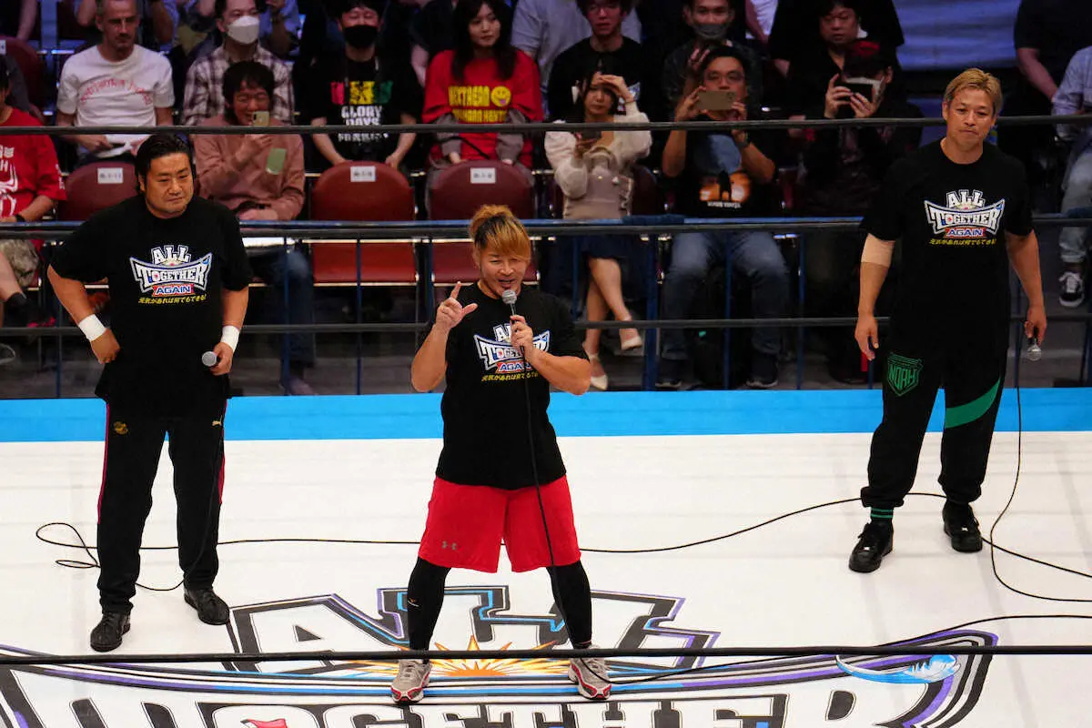 <ALL TOGETHER AGAIN>鷹木(左)にバックドロップを見舞う永田とBUSHIにバックドロップを見舞う諏訪魔(撮影・島崎忠彦) Photo by スポニチ 改心した諏訪魔が「エボルーション」復帰を宣言 試合後に佐藤らに謝罪、… ギャラリーで見る この記事のフォト 2023年06月09日の画像一覧 もっと見る 2023年06月09日の画像をもっと見る