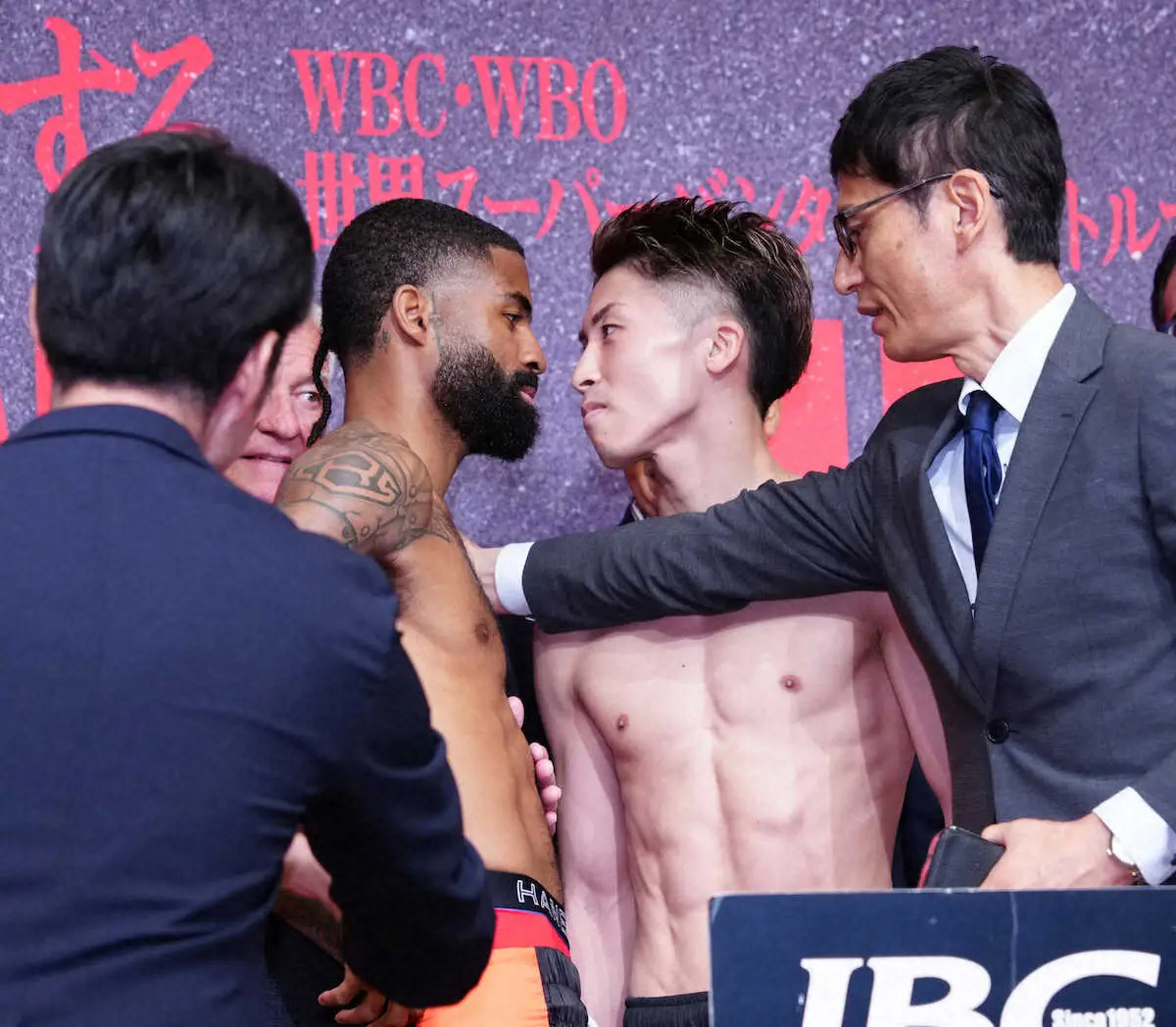 井上尚弥&フルトン ともに前日計量パス フェースオフでは約33秒にらみ合い 25日運命のゴング