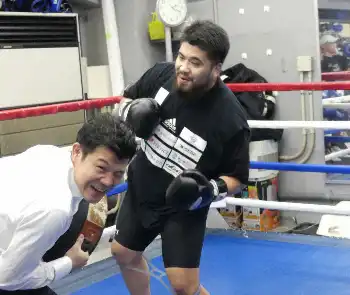倒立してポーズを決めてニードロップを落とすドラゴン・キッド(撮影・酒井卓也)
