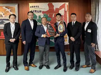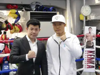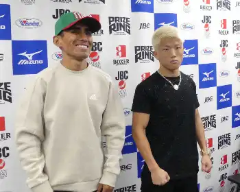 記念撮影する重岡銀(左)と重岡優(撮影・藤山 由理)