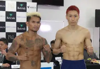 <WBO-AP スーパーウェルター級タイトルマッチ 井上・マットサリ>試合を制しラウンドガールと記念撮影をする井上(撮影・大城 有生希) Photo by スポニチ WBOAPスーパーウエルター級王者 井上岳志 6回TKO勝利で2度目の防衛に成功 ギャラリーで見る この記事のフォト 2023年10月12日の画像一覧 もっと見る 2023年10月12日の画像をもっと見る