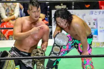 みちのくプロレスは、15日に岩手県矢巾町民総合体育館大会を開催。メインイベントのLIDET UWF世界王者そして東北ジュニアヘビー級王者の2冠王者であるフジタ“Jr”ハヤトとIWGPジュニアヘビー王者の高橋ヒロムの待望の一騎討ちは29分の激闘の末にヒロムが勝利した。
