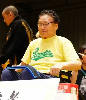 試合前にはファンとの記念撮影などに応じた天龍氏は、全試合終了後に車椅子姿でリングに上がりあいさつ。大きな拍手を浴びながら最後は恒例の「エイ、エイ、オー!」3連発で締めくくり「日曜日の昼間からこれだけのファンが集まってくれて感無量です」と笑顔。今後については「会場に顔を出して(プロ野球解説者の)江本孟紀みたいなコメントで選手を励まさなきゃいけない。今、辛口のコメントは俺しか言えないからな」と豪快に笑った。