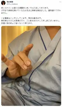 浅川はX(旧ツイッター)を通じ、「報じられている通り交通事故にあい今は入院しております」と、交通事故に遭ったのは報道通り自身であると報告。「夕方まで携帯を預けていたため先ほど携帯を開きました。連絡遅れてすみません」とした。