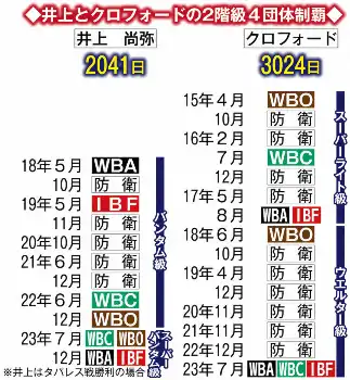 井上とクロフォードの2階級目4団体制覇