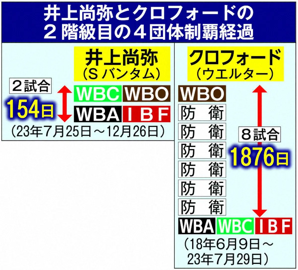 4本のベルトを手にする井上(撮影・島崎忠彦) Photo by スポニチ たった2戦で!尚弥 2階級4団体最速統一 タパレスを10回KO 世界ベルト10… ギャラリーで見る この記事のフォト 2023年12月27日の画像一覧 もっと見る 2023年12月27日の画像をもっと見る