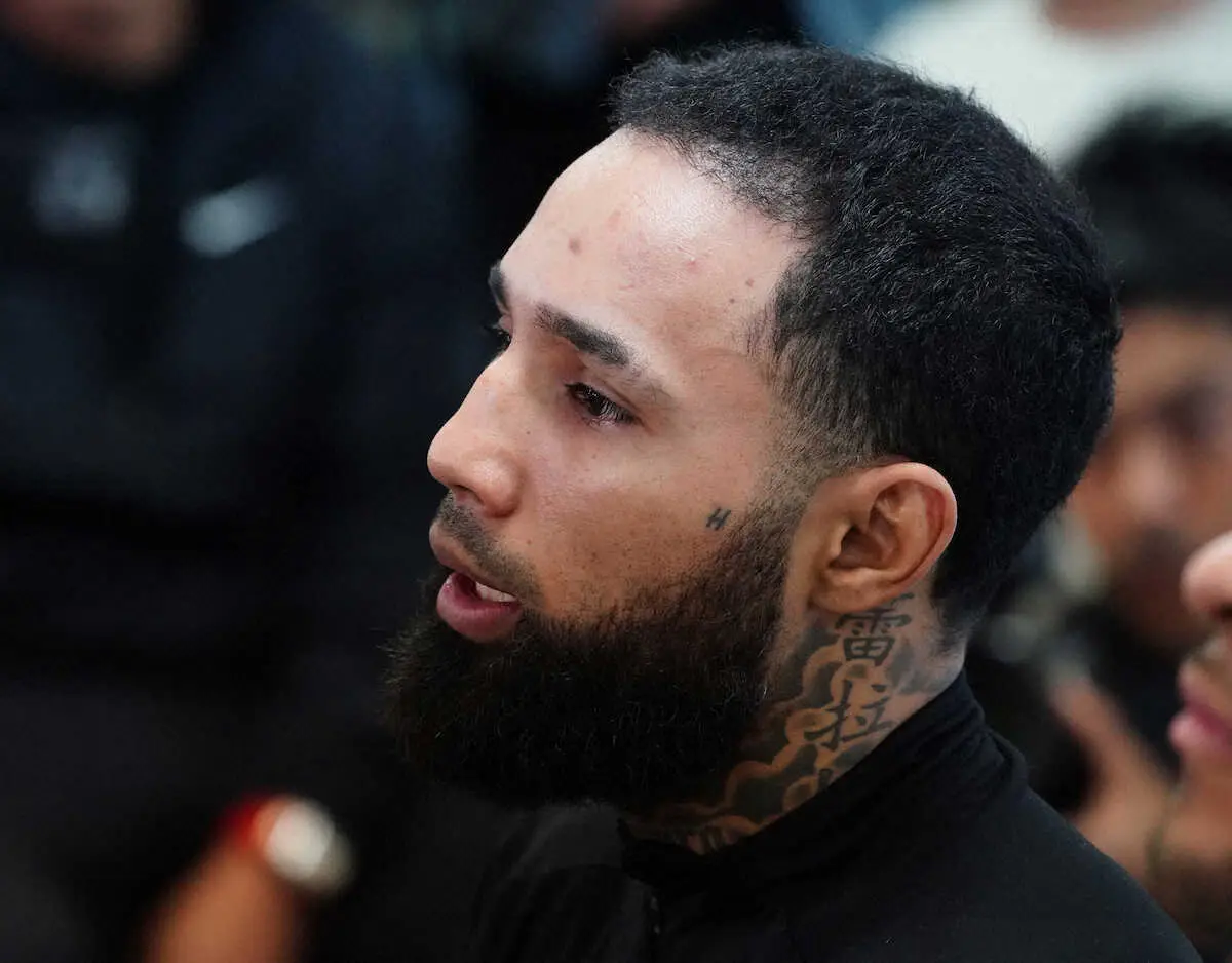 練習前のネリの会見に大橋秀行会長(前列左から2人目)と井上真吾トレーナー(同左から3人目)が参加する(撮影・郡司 修) Photo by スポニチ ネリ 尚弥は「ジョーダンじゃない」 悪童モード“バスケの神様”引き合い… ギャラリーで見る この記事のフォト 2024年04月24日の画像一覧 もっと見る 2024年04月24日の画像をもっと見る