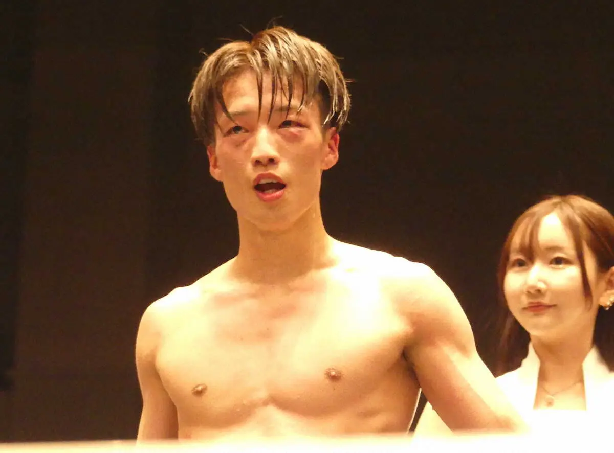 1回に2度のダウンを奪うと、5回には右ストレートからの連打で3度目のダウン。6回にコーナーで左右の連打を浴びせレフェリーストップを呼び込んだ。3戦連続KO勝利に「練習してきたパンチが出せた。応援が力になりました」と安堵(あんど)の表情を浮かべた。