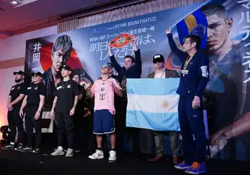 あす7日に行われるスーパーフライ級2団体王座統一戦の公式会見が6日、都内のホテルで開かれた。WBA同級王者・井岡一翔(35=志成)は「明日は圧倒的な強さを見せて統一する、それだけです。必ず勝ちたいと思っています。日本人の強さを見せて必ずベルトを統一したい」、IBF王者フェルナンド・マルティネス(32=アルゼンチン)は「国と国を背負って、グレートな2人のボクサーが衝撃的な戦争をする。歴史的な試合になると思う」と意気込んだ。