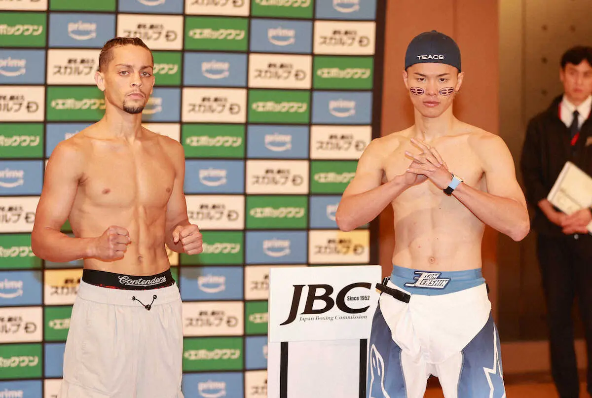 試合のイメージを問われると「どうなるか分からないが、しっかりやってきたことを遂行できれば必然的に倒せると思う。無理に最初からガンガン行かず、流れのままに戦おうと思う」と抱負を述べた。計量ではWBO世界スーパーフライ級王者・田中恒成(畑中)に挑戦するジョナタン・ロドリゲス(メキシコ)が2・9キロもオーバー。「競技者失格とは思う、3キロはヤバいっすよ」とあきれたが、最後はファンへ向け「(前戦から)約半年空いて、毎試合進化できていることは分かる。全ての動きにおいて変わった動きを見せられる。明日は勝ちにいく」と意気込んだ。