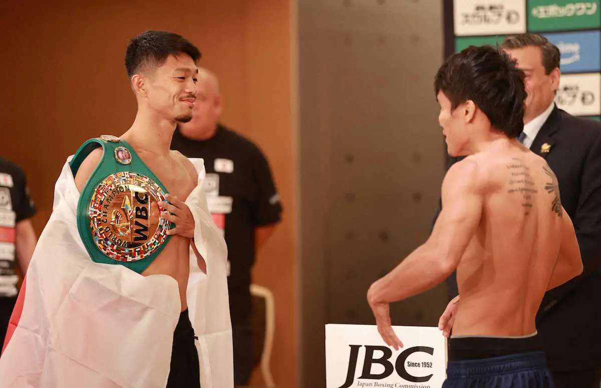 中谷潤人、300グラムアンダーで前日計量パス ベルトを指さす挑戦者に”It's Mine”