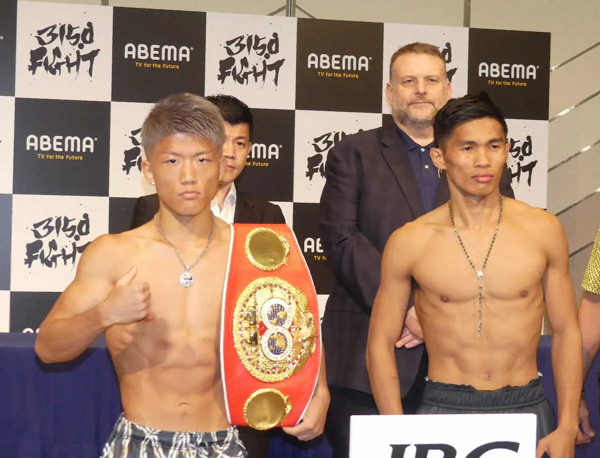 IBF世界ミニマム級タイトルマッチの前日計量と公式会見が27日、滋賀県内のホテルで行われ、IBF世界同級王者の重岡銀次朗は47・5キロで一発パスした。滋賀県初のボクシング世界戦で自身3度目の防衛戦に臨む銀次朗は「KOを期待されていると思う。面白くない、眠くなる試合はしたくない。しっかりメインイベンターとして、責任を持って楽しいボクシングを見せたい」と落ち着いた表情で話した。