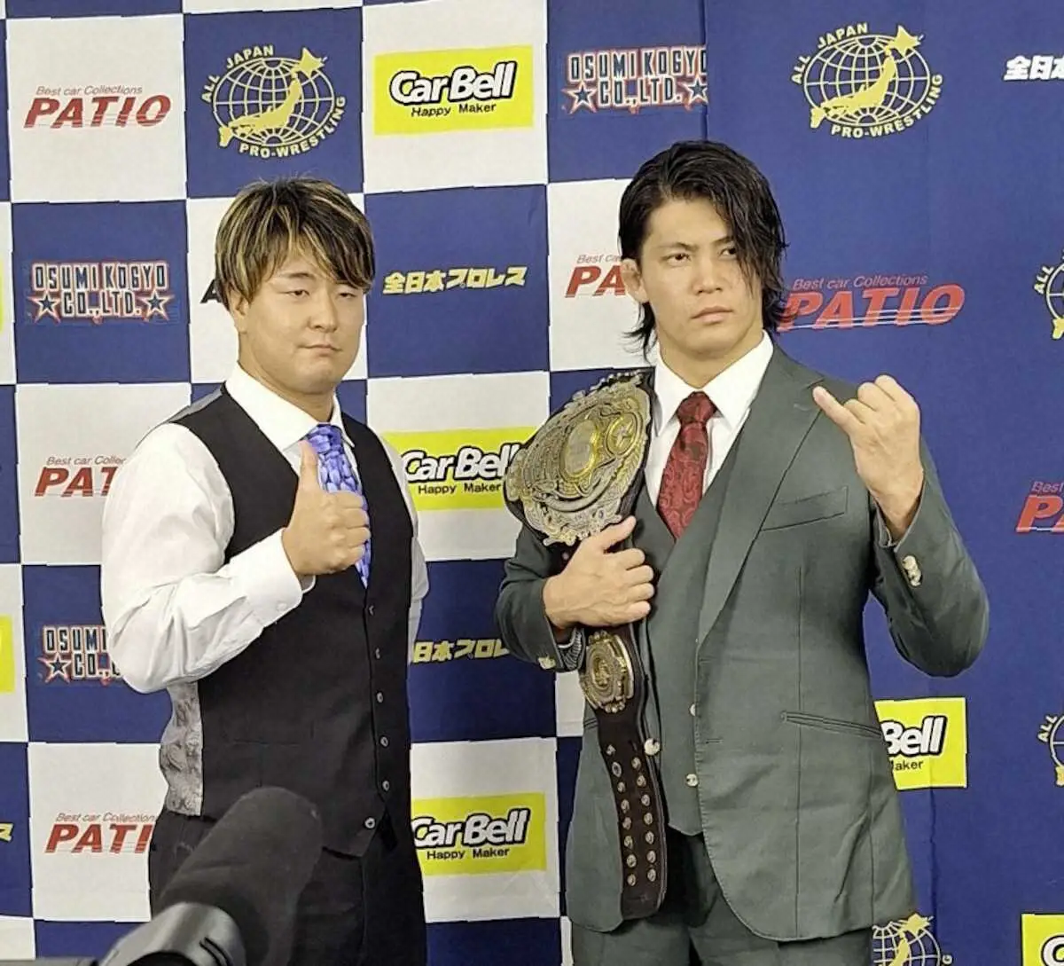 全日本プロレスは5日、都内で会見を行い、17日のアリーナ立川立飛で行われる立川大会で3冠ヘビー級王者・安斎勇馬(25)に青柳優馬(28)が挑戦することを発表した。