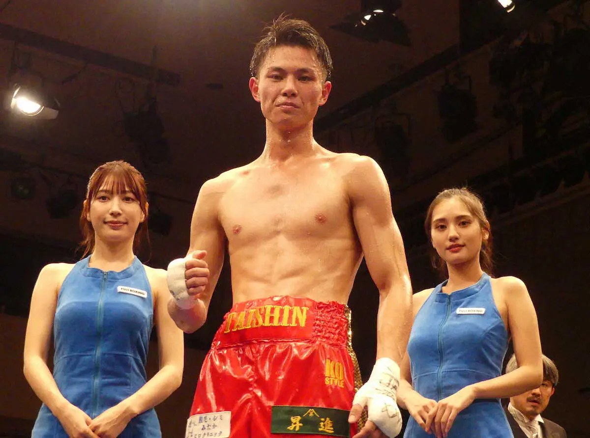 コーナーで連打を浴びせ、ダウン寸前まで追い込む場面も見られたが「2回と4回にラッシュを仕掛けて“止めてくれ、倒れてくれ”と思っていたが相手がかなり打たれ強かった。普通だったら倒せていたと思う」と相手を倒せず唇をかんだ。試合後は「めっちゃ痛い。折れているかと思った」と両拳の状態を明かしながらも「8ラウンド使い切ったことは収穫。危ない場面もなかったので良しとしたい」と話し、輪島氏が見守る中で3連勝を飾り7勝目を挙げた。