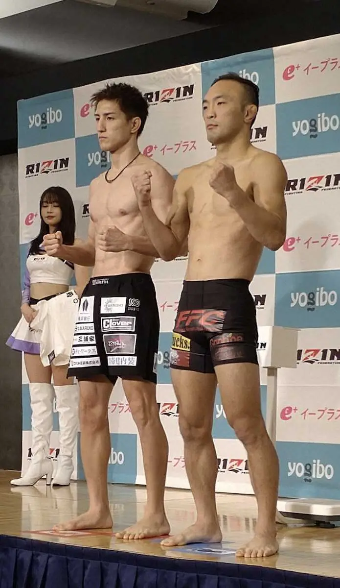 格闘技イベント「RIZIN48」(29日、さいたまスーパーアリーナ)の前日計量が28日、都内のホテルで行われた。