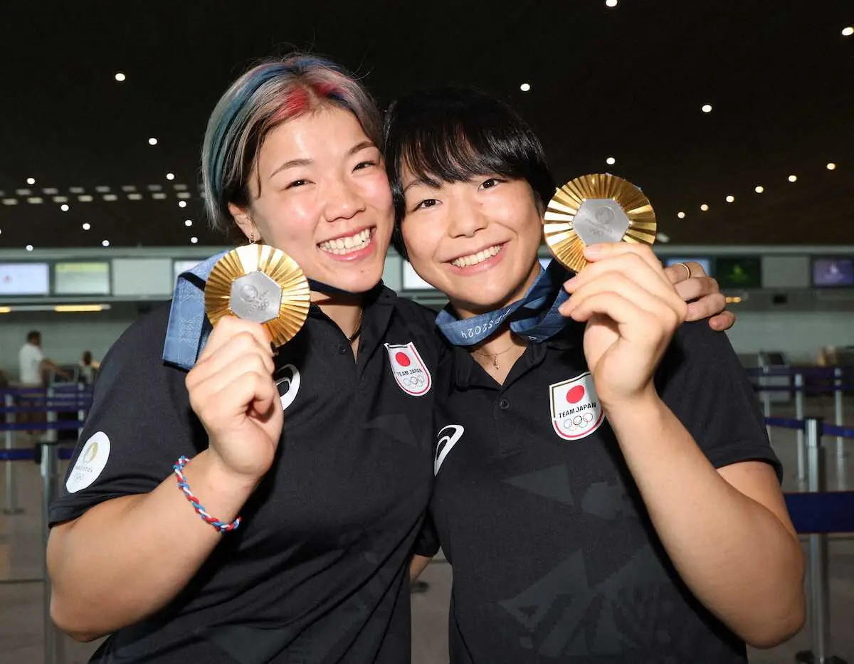格闘技イベント「RIZIN48」が29日、さいたまスーパーアリーナで行われた。休憩前にパリ五輪女子フリースタイル53キロ級金メダリストの藤波朱里(20)と同76キロ級金メダリストの鏡優翔(23)がリングに金メダルを首にかけて登場。