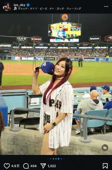 イヨ・スカイ ショーパン&ユニホーム姿でドジャース戦を生観戦!「可愛い」「始球式やってほしい」の声