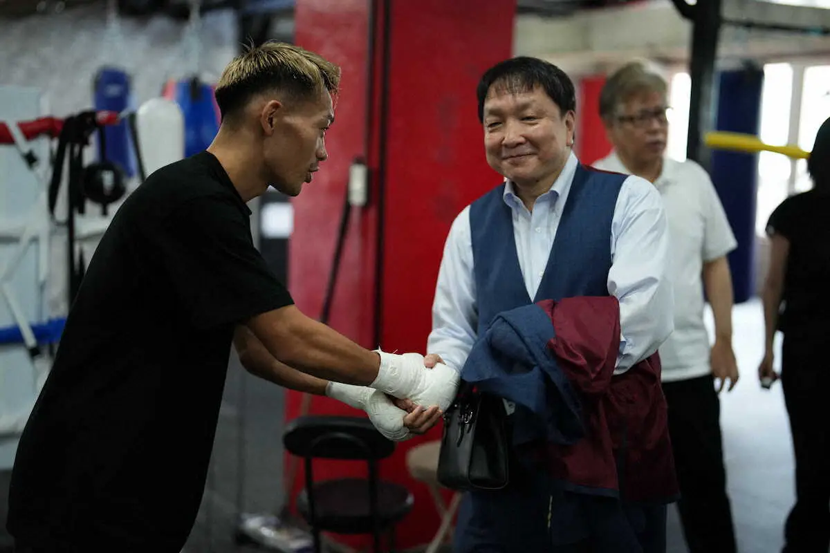 <堤聖也公開練習>練習を公開した堤聖也(左から2人目)と視察に訪れた大橋ジムの大橋会長(右)(撮影・小海途 良幹) Photo by スポニチ 大橋秀行会長が堤聖也の公開練習を視察 左構えは"誤算"も、拓真はスイッ… ギャラリーで見る この記事のフォト 2024年10月04日の画像一覧 もっと見る 2024年10月04日の画像をもっと見る