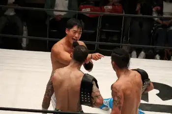 GLEATは9日、「GLEAT Ver.EX~GLEATvs強敵~」(後楽園ホール)を開催。メインイベントでは#STRONGHEARTS同士の6人タッグマッチが実現。最後はT-HawkがCIMAから必殺のナイトライドで勝利した。試合後にはエル・リンダマンとタッグ王者へ挑戦表明した。