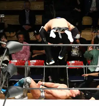 GLEATは9日、「GLEAT Ver.EX~GLEATvs強敵~」(後楽園ホール)を開催。第7試合ではエル・イホ・デル・ビキンゴと渡辺壮馬がシングルで激突。最後は場外に設置されたテーブルの上に寝る渡辺に向かって、ビギンゴがリング内から勢いをつけたスワンダイブ式630°スプラッシュを決めて、そのままリングに戻してフォール勝ちを収めた。