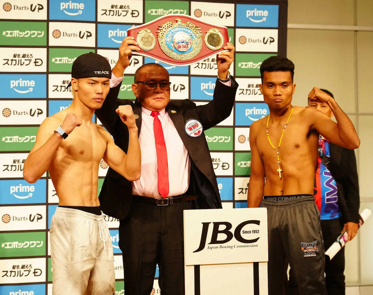 3戦連続のKO勝利も期待される5戦目。対戦相手のアシロとのフェースオフでは約17秒間にらみ合うと、最後はグータッチで健闘を誓い合った。地域ベルトをつかめば、国内での世界挑戦権を獲得する。世界戦を含む2日間興行へ「今、全員が強いというのが当たり前。そこでどれだけ自分の色を見せられるか」と話し、自身は「前回からさらに進化している。突拍子もない動きや、ボクシングでは普段ない動きだったりの“宇宙系ボクシング”を見せたい。ユニバーススタイルでやったろうかなと思う」と変幻自在のスタイルで初のベルト奪取を見据えた。 (伊東 慶久)