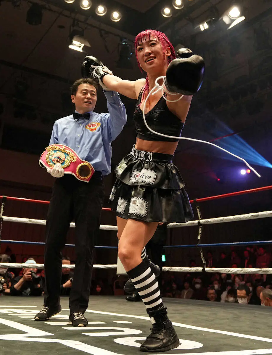 コスプレ入場でも注目される昼田は22年12月の王座決定戦で谷山佳菜子(ワタナベ)に判定勝ちし、プロ4戦目でWBO女子世界スーパーフライ級王座を獲得。今年2月、パク・ジヒョン(韓国)に6回TKO勝ちして2度目の防衛に成功していた。現在放送中のTBSドラマ「あのクズを殴ってやりたいんだ」(毎週火曜日午後10時)にも出演し、女子ボクサー役を演じている。