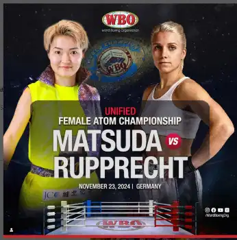 3団体統一王者となったルプレヒトは「松田は素晴らしい選手だった。ドイツまで来てくれたことに感謝したい」とコメント。試合後はIBF世界同級王者の山中菫(23=真正)をリングに招き、来年の4団体統一戦を約束した。