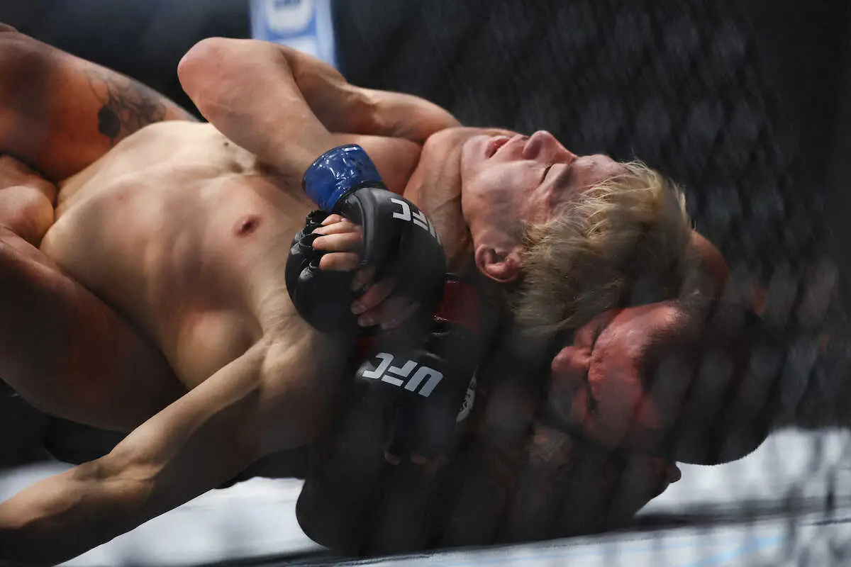 テイクダウンを取られる朝倉海(左)(AP) Photo by AP 朝倉海 2Rバックチョークで失神負け…完敗にぼう然、タイトル戦デビューも… ギャラリーで見る この記事のフォト 2024年12月08日の画像一覧 もっと見る 2024年12月08日の画像をもっと見る