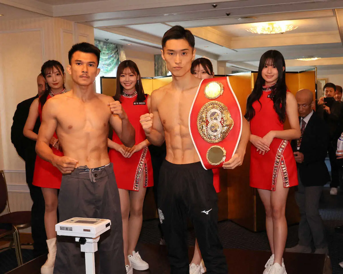 プロボクシング興行「U―NEXT BOXING」(15日、大阪・住吉スポーツセンター)の前日計量が14日、大阪市内のホテルで行われた。