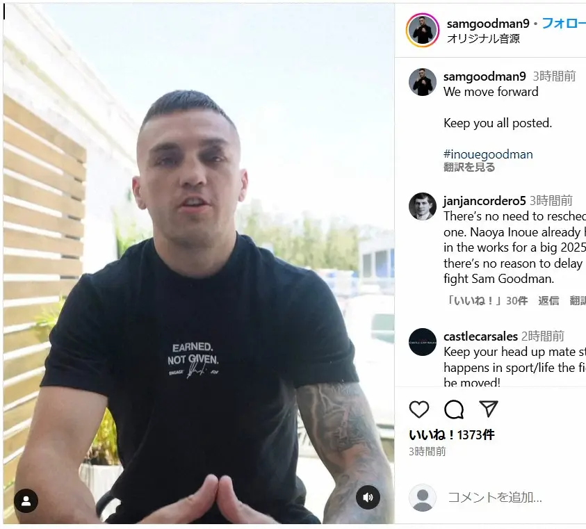 グッドマンは動画で「このチャンスを逃したくないし、この男(井上)と戦いたい。今回は14週間のキャンプをこなしてきたが、これは(ボクシング)人生15年そのもので、ここに来るためにやってきた全てだ」とアピール。「ただチャンスが欲しいだけだ。傷が治ったらできるだけ早くできればいい」と訴えた。
