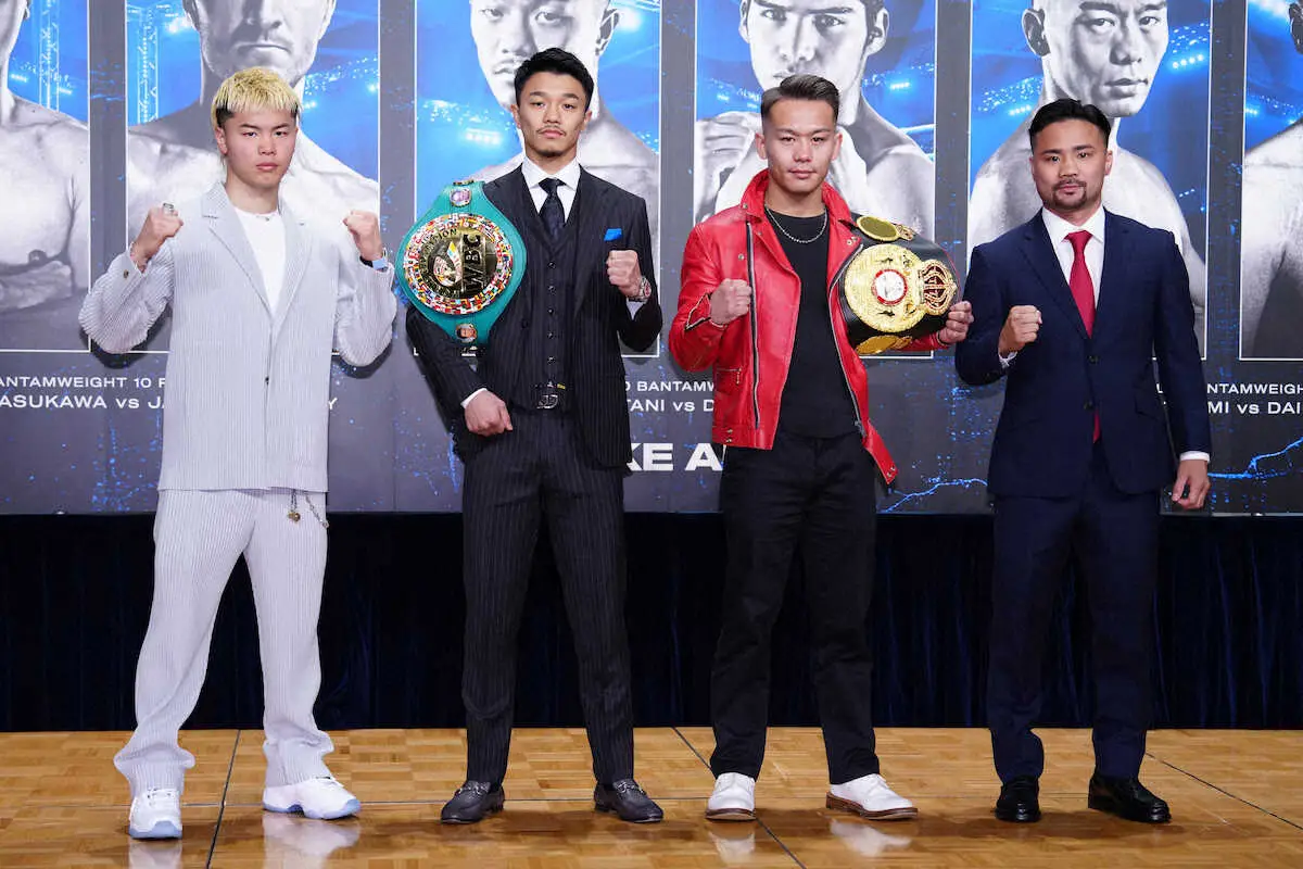 <Prime Video Boxing 11会見>フォトセッションでポーズを決める堤(左)と比嘉(撮影・木村 揚輔) Photo by スポニチ 堤聖也「びっくりした」 初防衛戦は引退撤回の比嘉に決定! 同じ年友人対… ギャラリーで見る この記事のフォト 2024年12月28日の画像一覧 もっと見る 2024年12月28日の画像をもっと見る