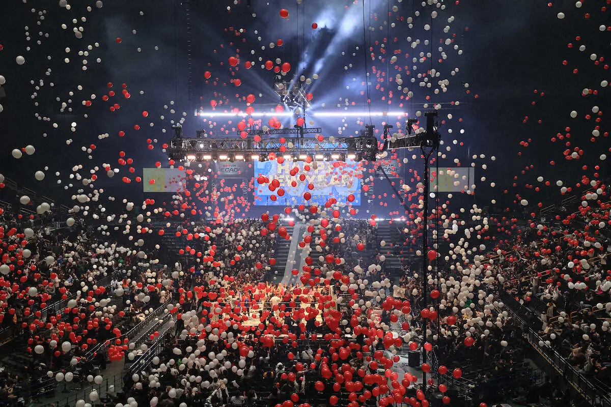 <RIZIN49>新年を祝って上から風船が降る(撮影・篠原岳夫)