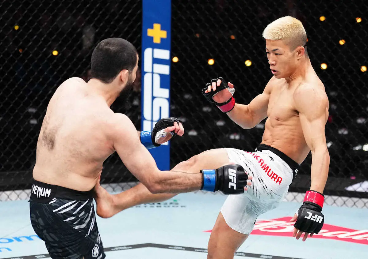 世界最大の米総合格闘技UFCは18日(日本時間19日)、米イングルウッドのインテュイット・ドームで「UFC311」が行われた。ROAD to UFCのバンタム級トーナメントで優勝した中村倫也(29=ATT)は約1年ぶりに復帰戦でムイン・ガフロフ(29=タジキスタン)と対戦。1Rからガフロフの打撃に苦戦し、2Rにはガフロフの右をもらい、ダウンを奪われた。最終Rにも間接技などで決めにいくが、あと1歩及ばず判定0―3で敗れた。