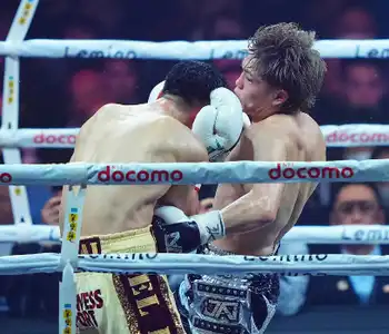 坂井(右)に左ボディーを見舞う佐々木(撮影・島崎忠彦) Photo by スポニチ 王者・佐々木尽がウエルター級アジア2冠王座防衛 ベテラン坂井に3-0判定… ギャラリーで見る この記事のフォト 2025年01月24日の画像一覧 もっと見る 2025年01月24日の画像をもっと見る