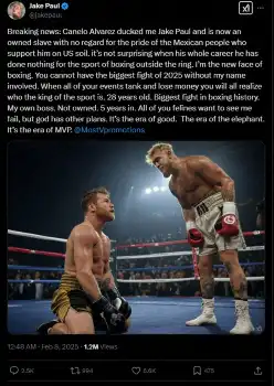 サウジと契約のカネロは「奴隷」“対戦消滅”のユーチューバーが批判 カネロ反発「本物とだけ戦う」