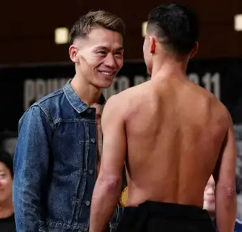 ノンタイトル戦でドローだった一戦から約4年4カ月ぶりの再戦となる友人対決。フェースオフでは珍しく笑顔で「明日は全力を尽くそう」と健闘を誓い合った。王者は「殴り合いになるし、最終的には心と心の勝負になる。派手な試合になる」と意欲十分。比嘉も「気合を入れて初回から全力で行く」と2階級制覇へ自信を見せた。