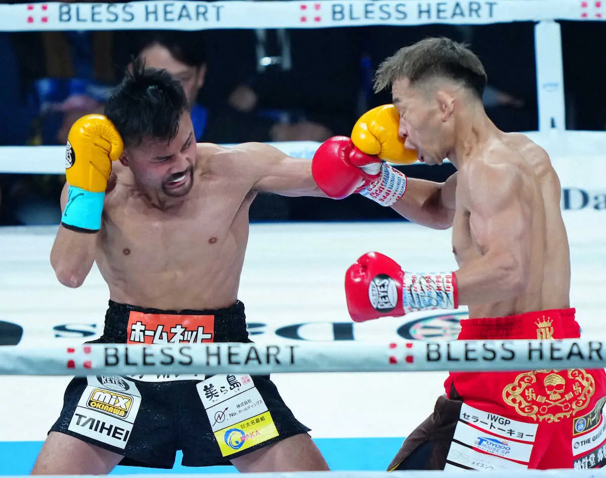 <WBA世界バンタム級 堤・比嘉>堤と引き分けリングを後にする比嘉 (撮影・藤山 由理) Photo by スポニチ 比嘉大吾 死闘の末に2階級制覇ならず…再戦も判定3者がドロー 国内最長6… ギャラリーで見る この記事のフォト 2025年02月24日の画像一覧 もっと見る 2025年02月24日の画像をもっと見る